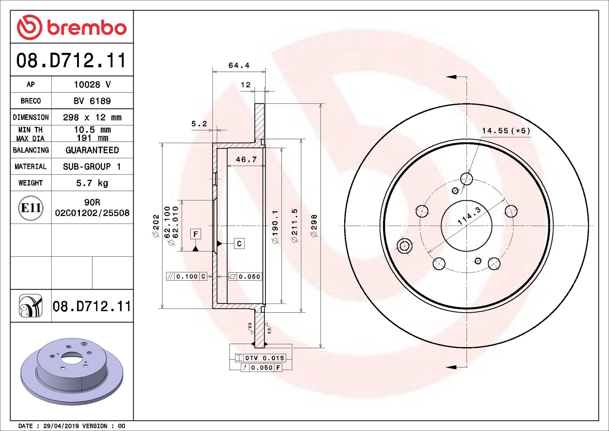 | Außendurchmesser [mm] 298 |