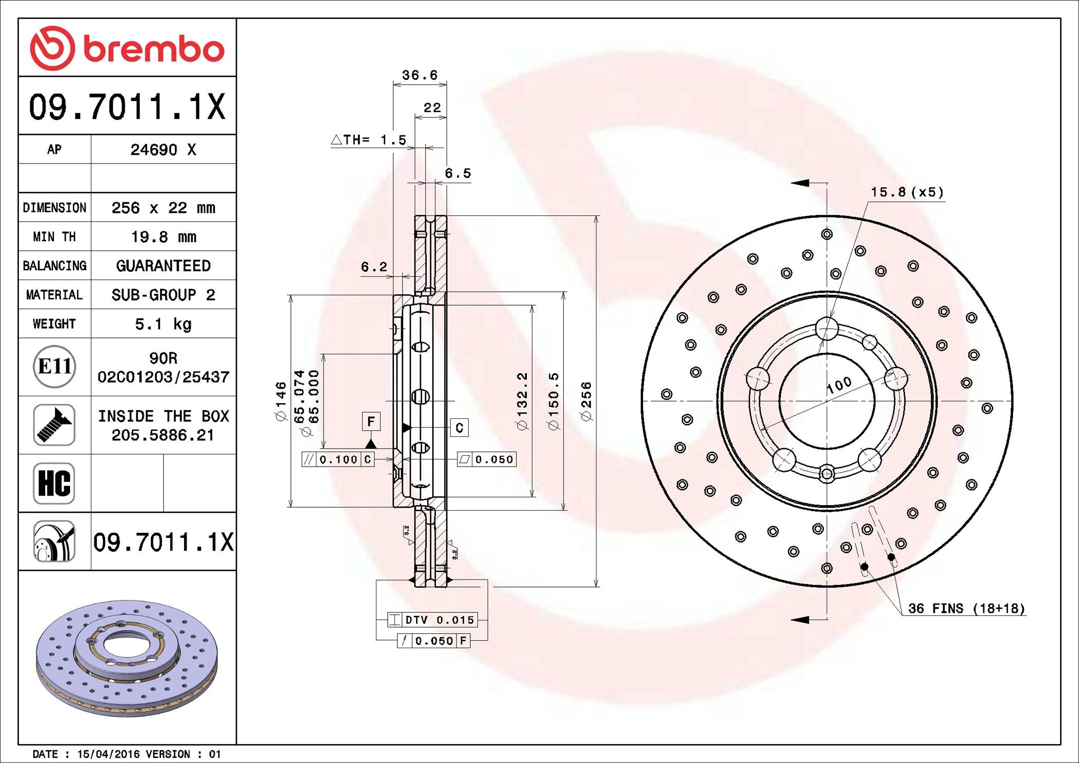 | Bremsscheibenart gelocht/innenbel. |