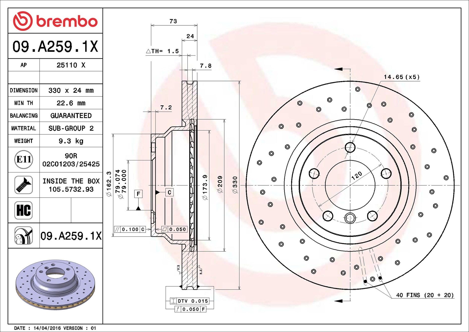 | Bremsscheibenart gelocht/innenbel. |