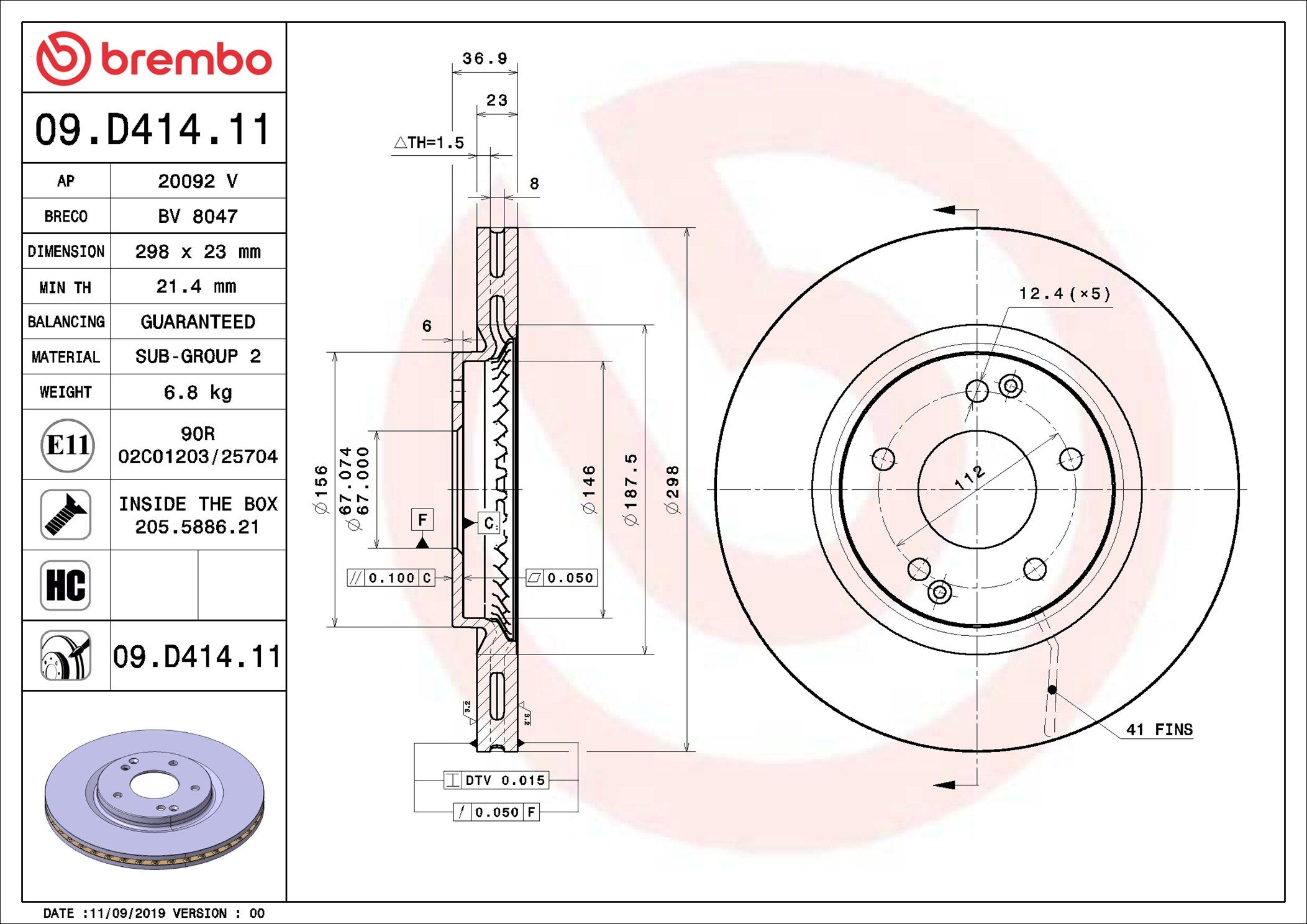 | Außendurchmesser [mm] 298 |