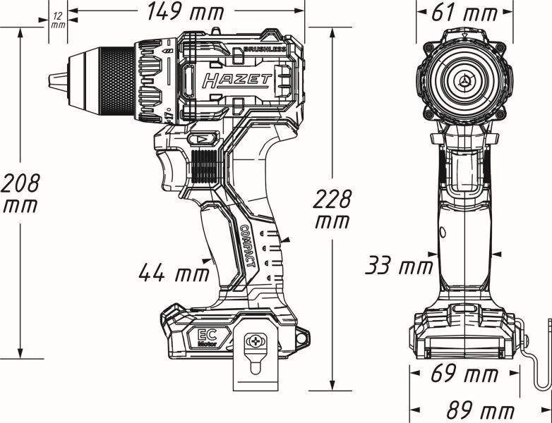 •Kompakter, leistungsstarker Bohrschrauber mit extrem kurzer