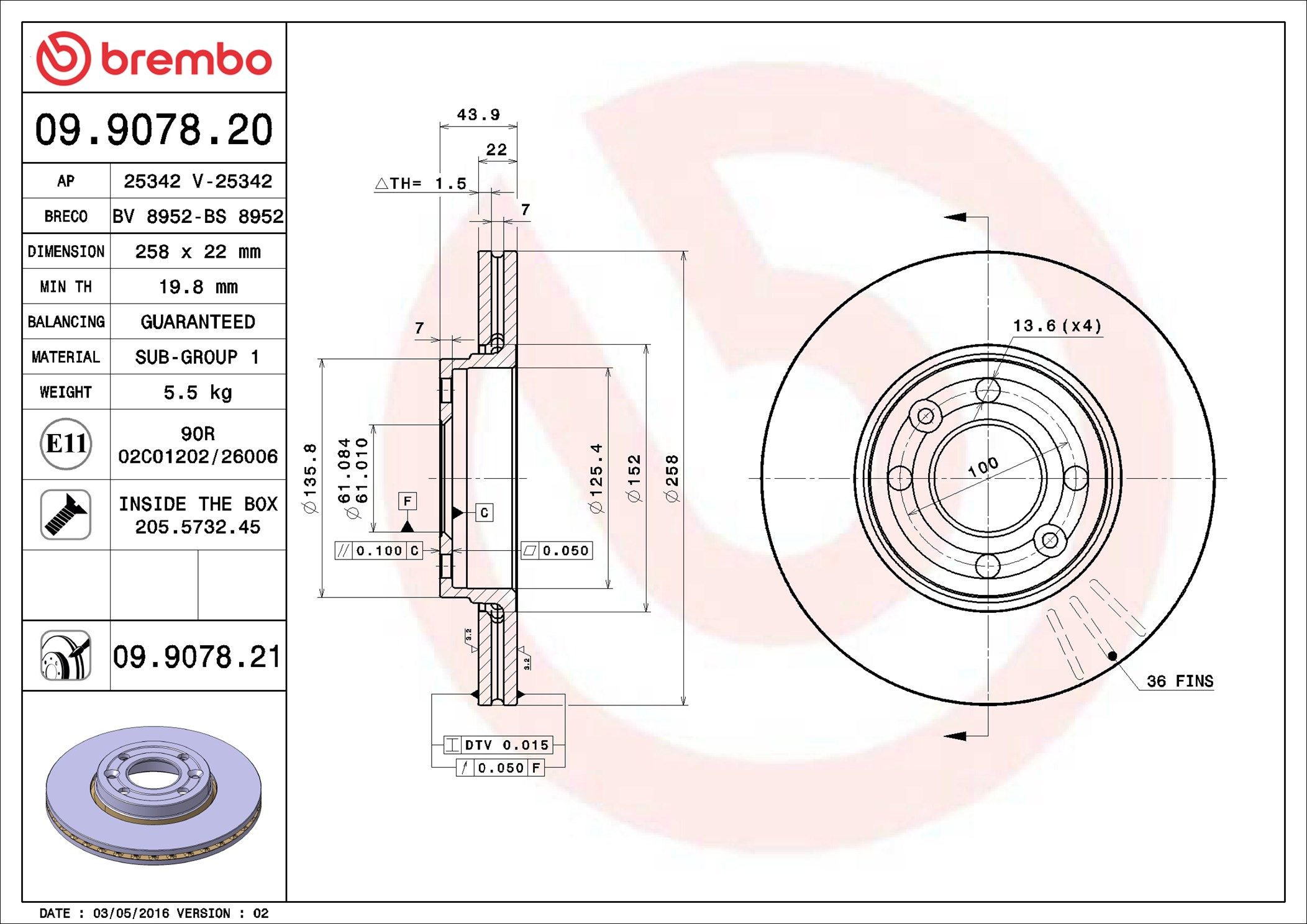 | Außendurchmesser [mm] 258 |