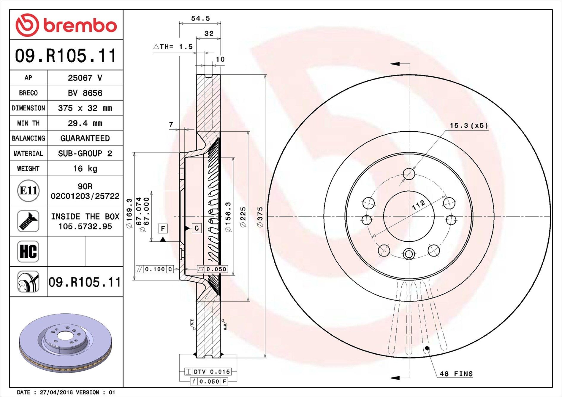 | Außendurchmesser [mm] 375 |
