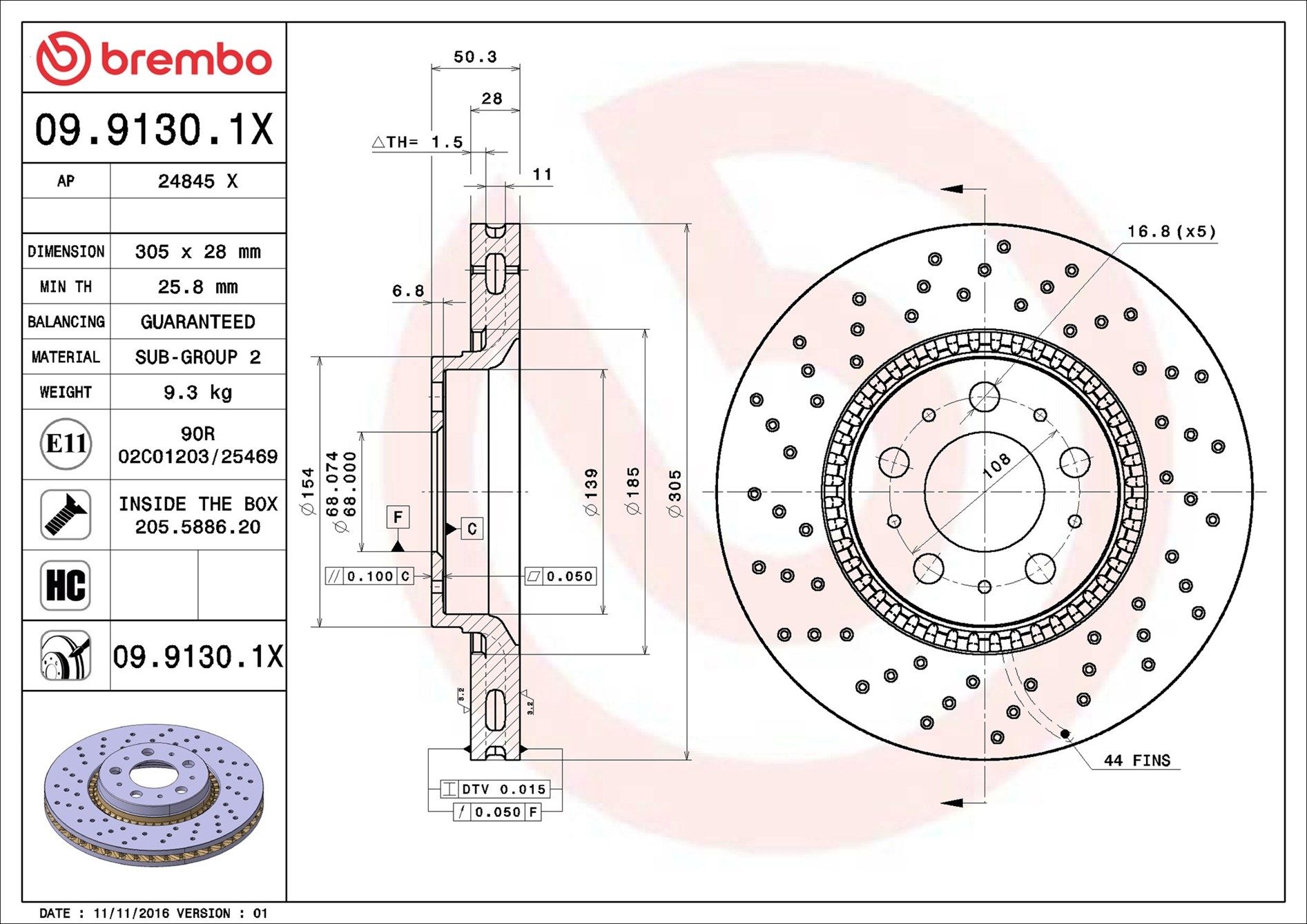 | Bremsscheibenart gelocht/innenbel. |