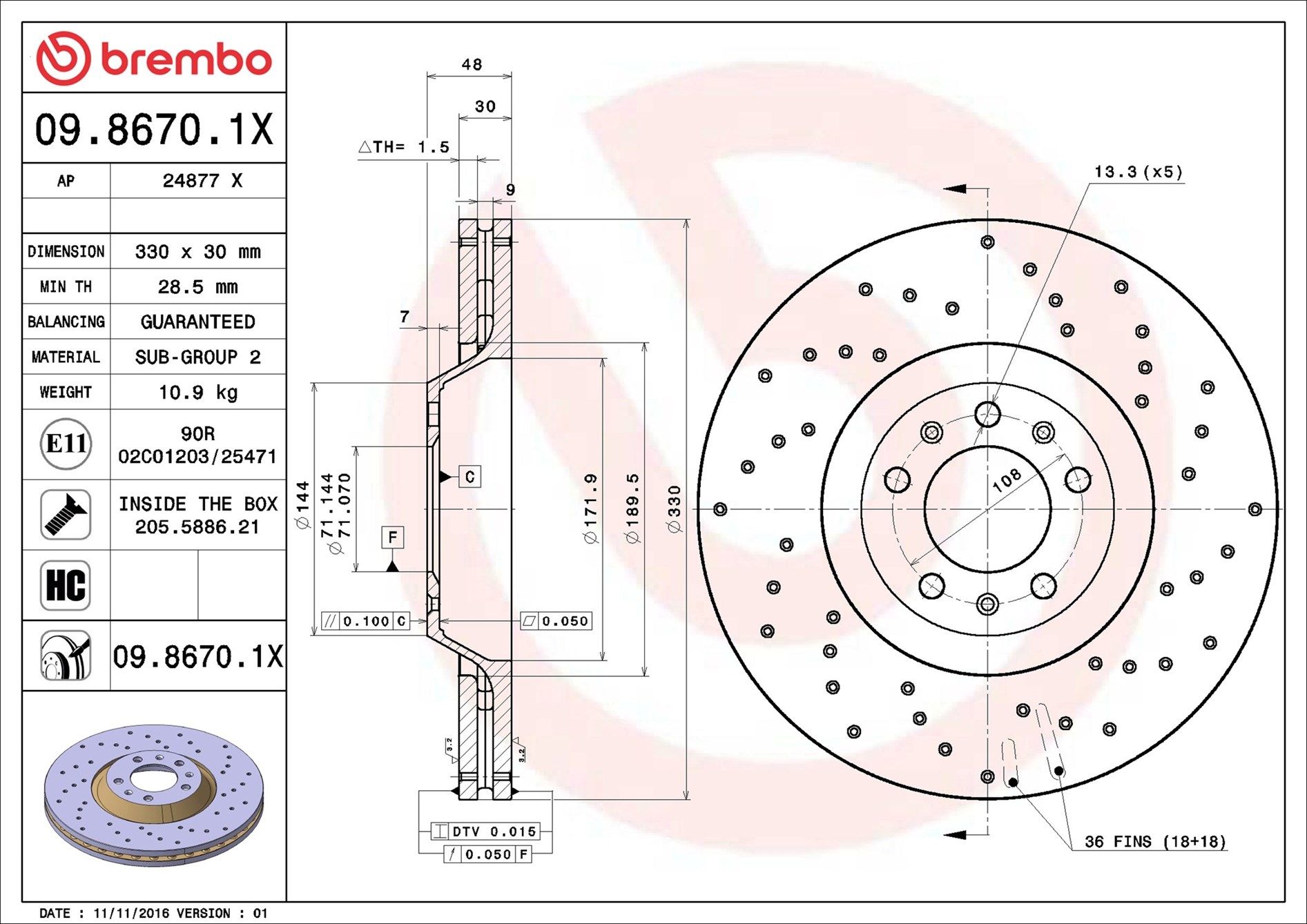| Bremsscheibenart gelocht/innenbel. |