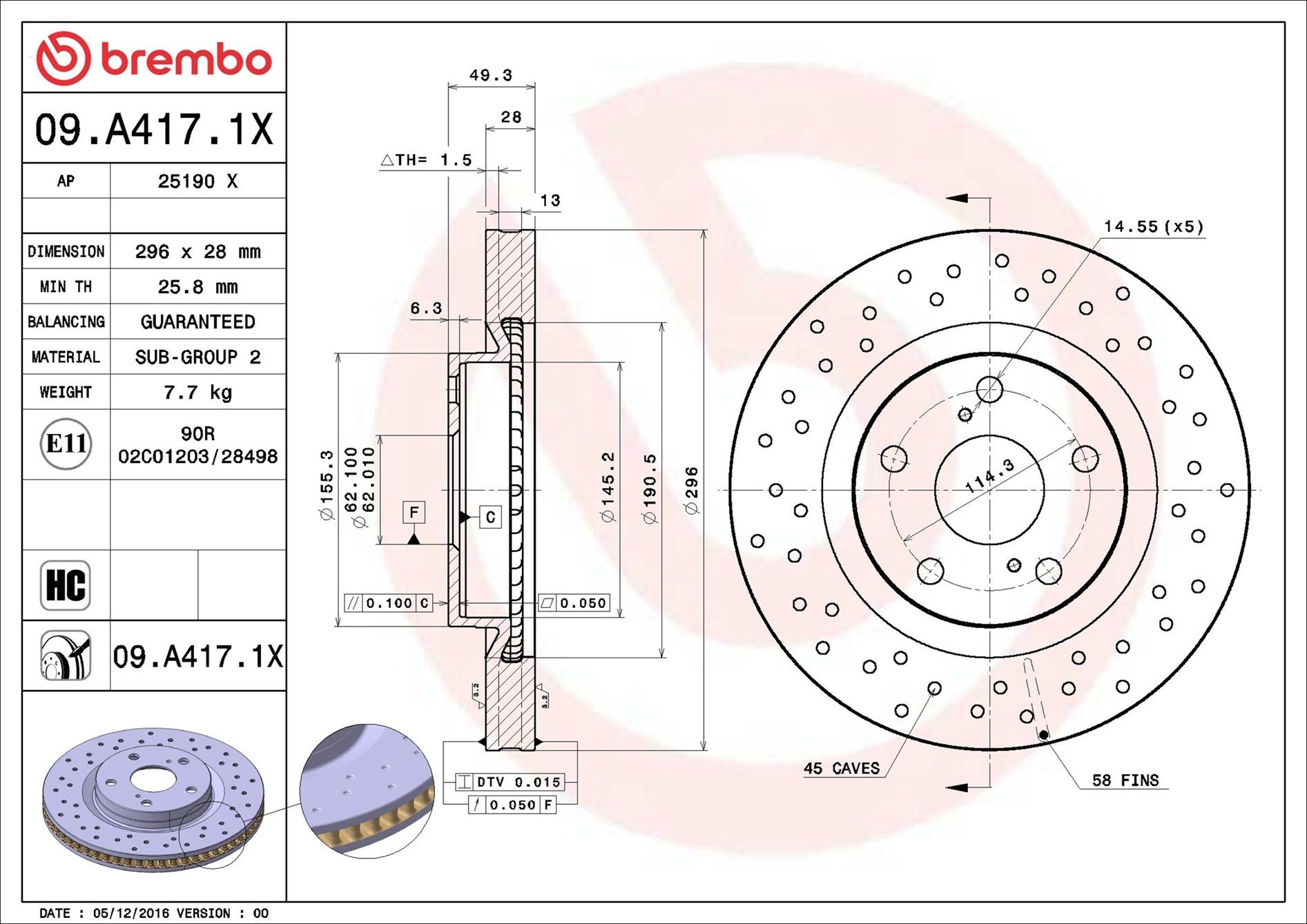 | Bremsscheibenart gelocht/innenbel. |