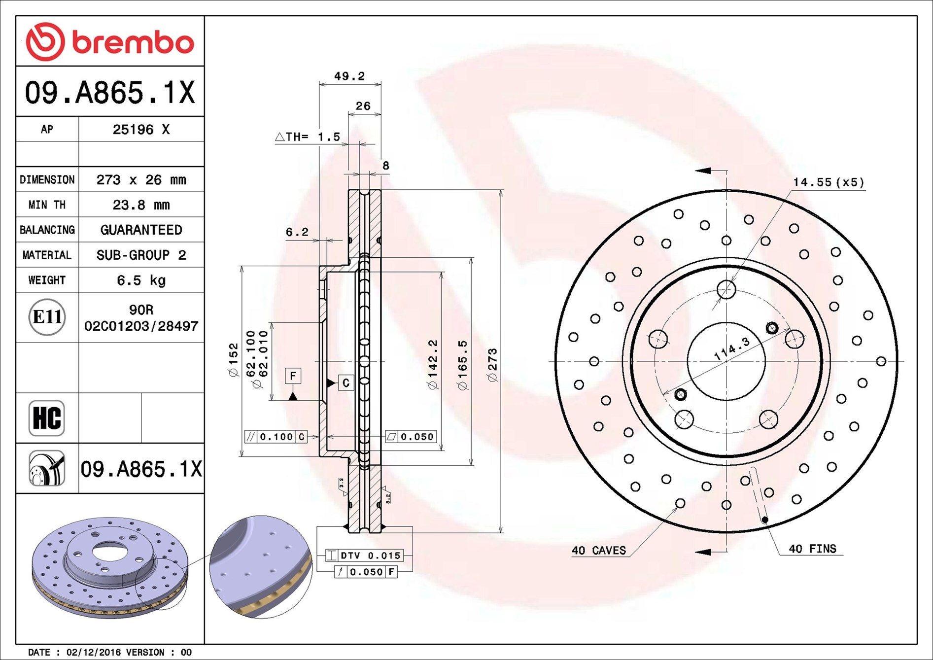 | Bremsscheibenart gelocht/innenbel. |