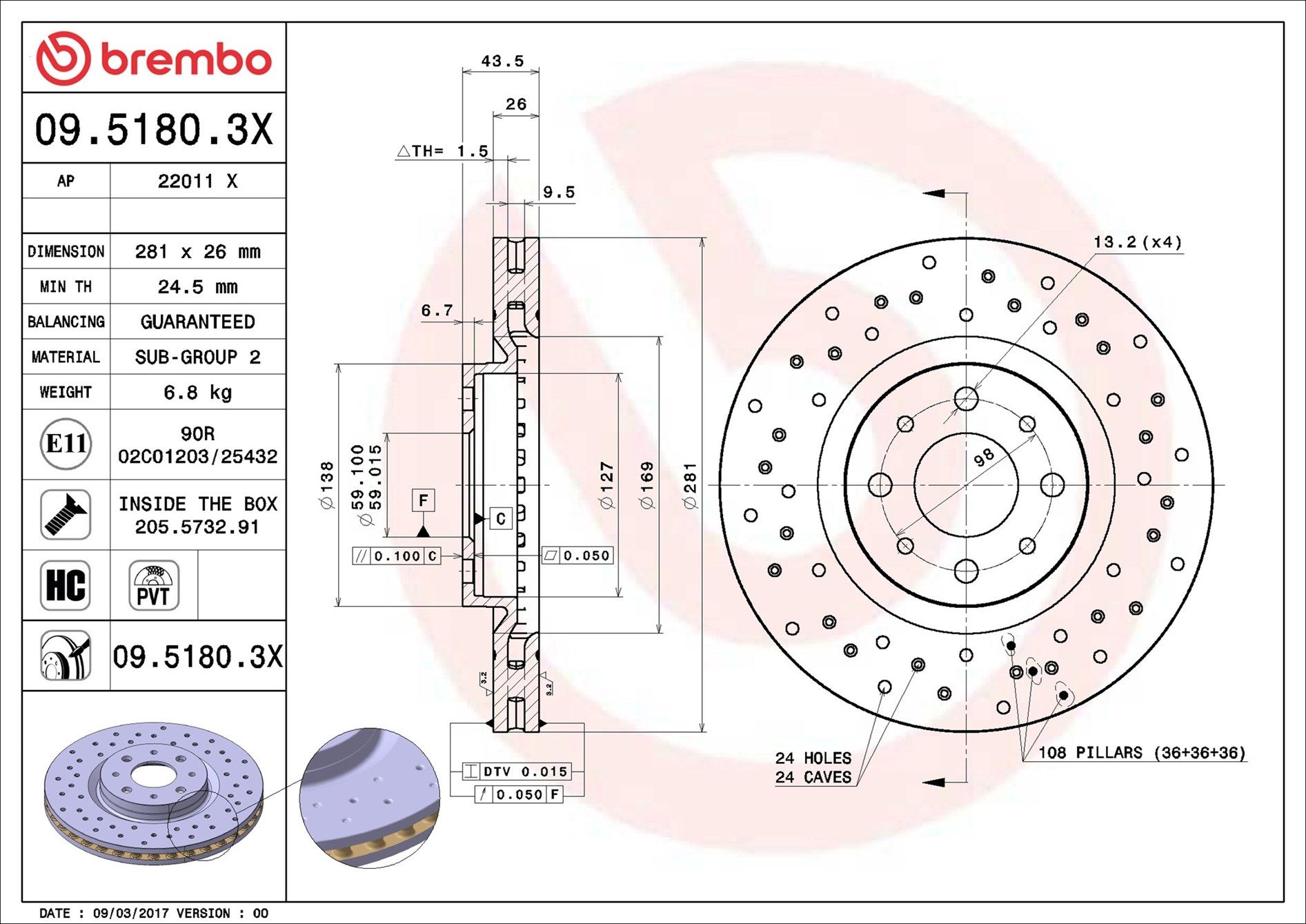 | Bremsscheibenart gelocht/innenbel. |
