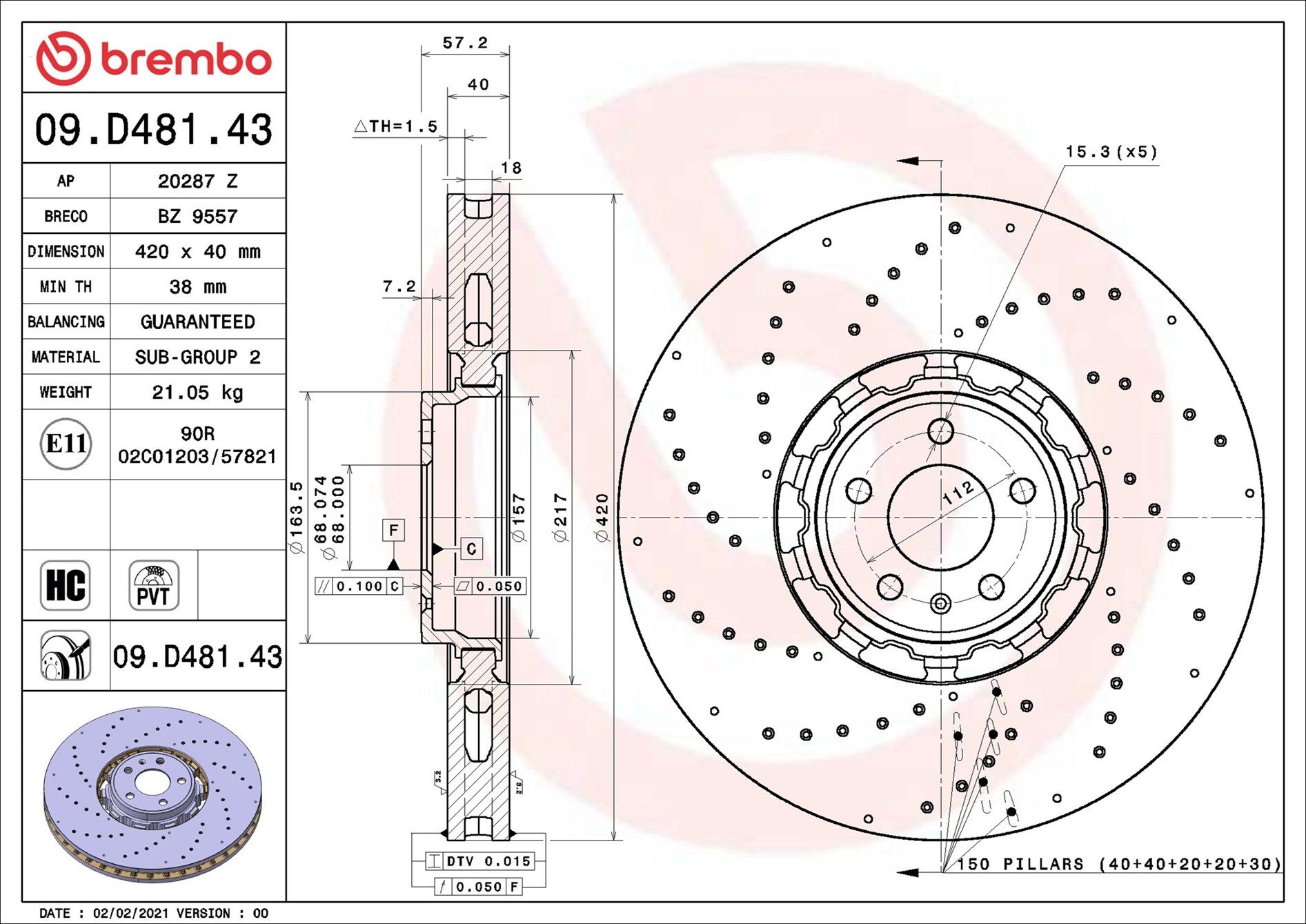 | Bremsscheibenart gelocht/innenbel. |
