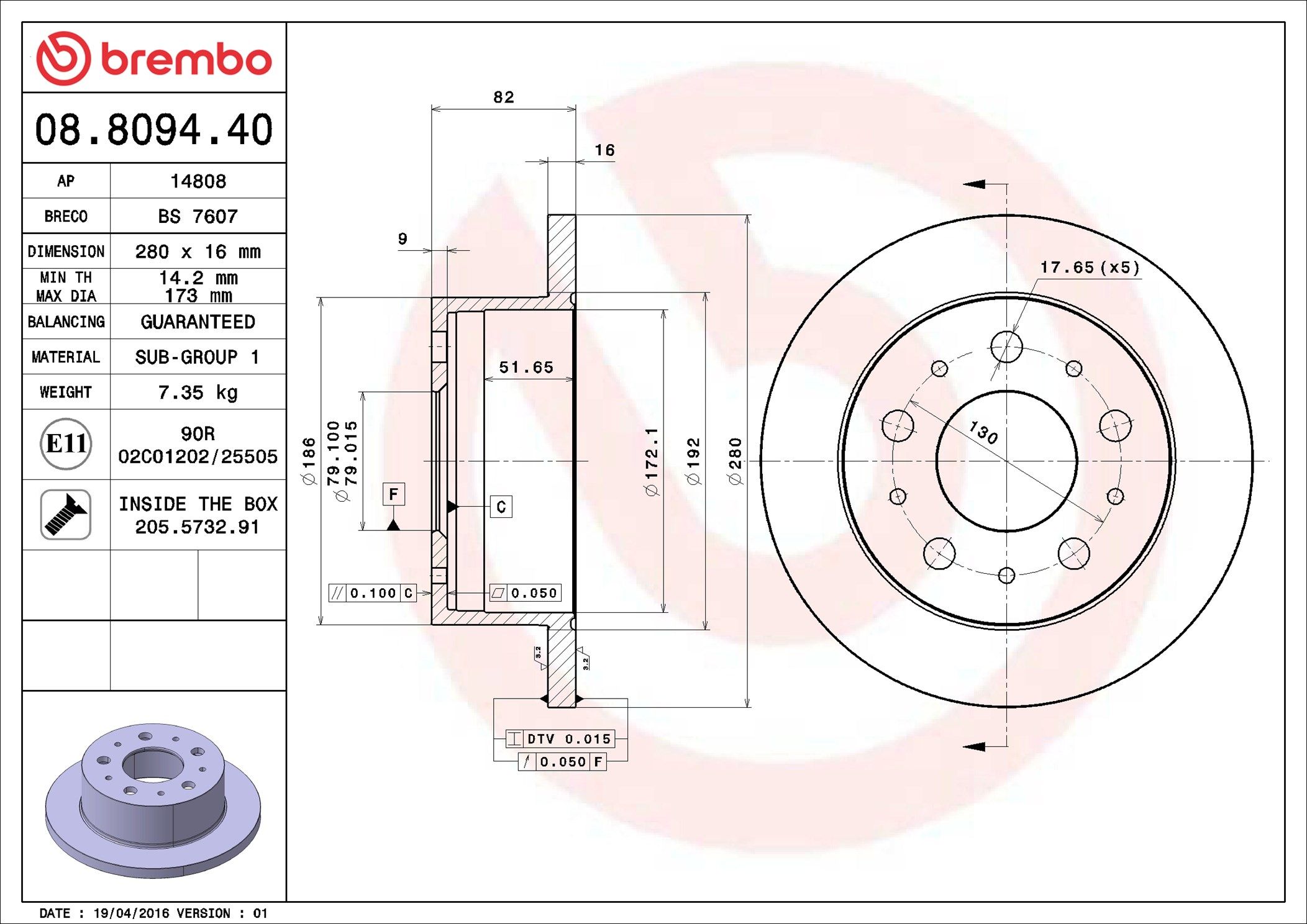 | Bremsscheibendicke [mm] 16 |