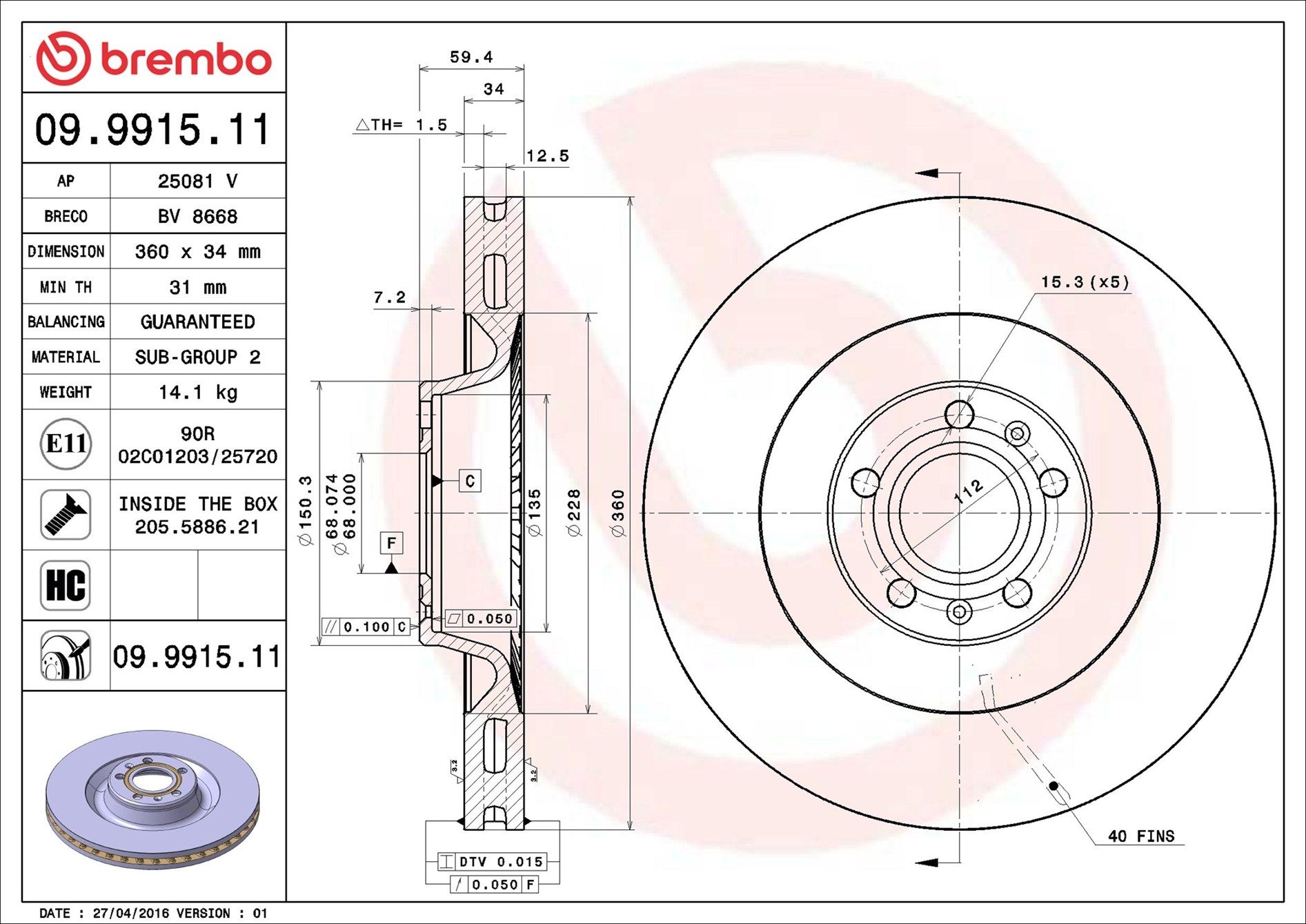 | Bremsscheibenart innenbelüftet |