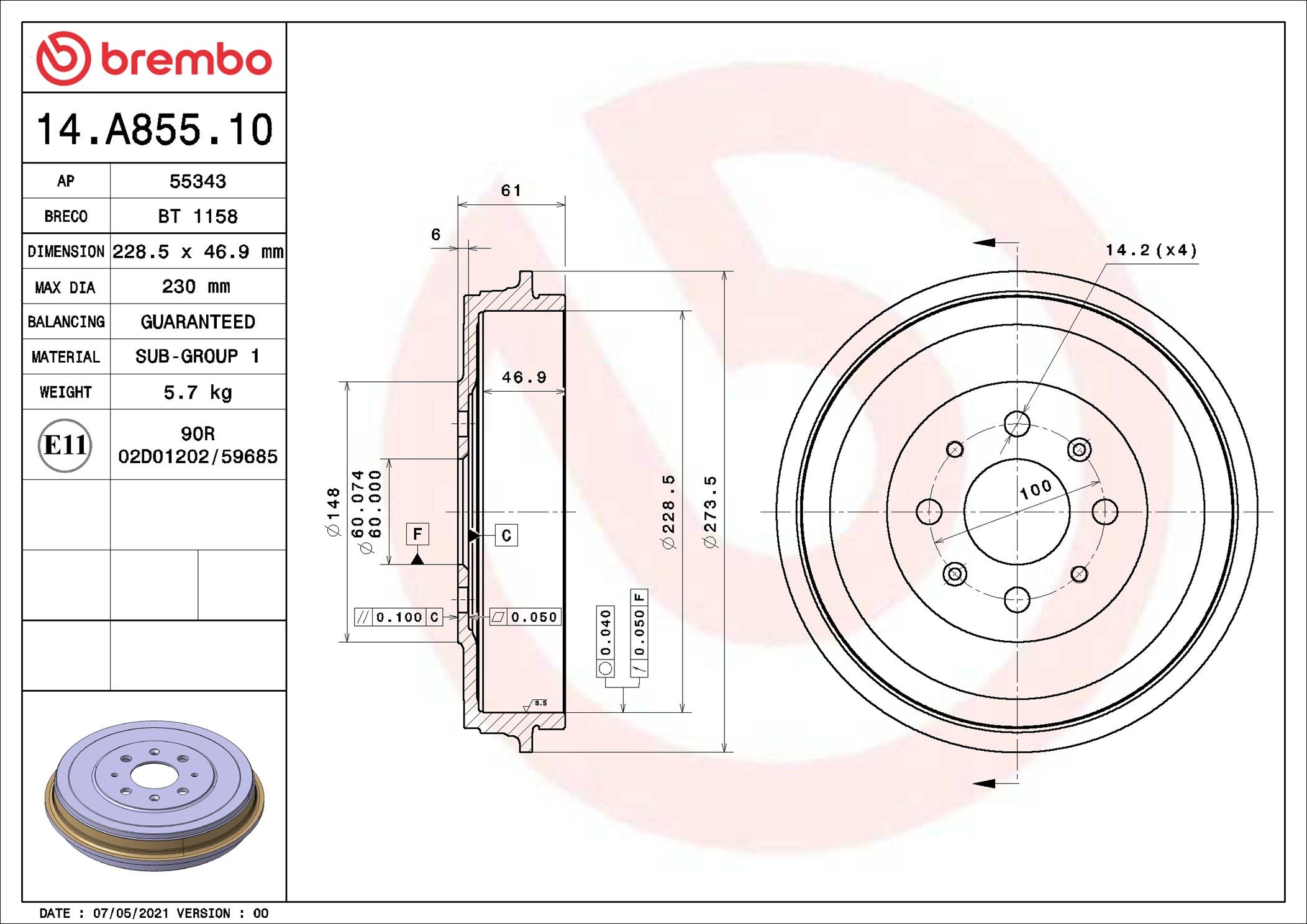| Bremstrommelhöhe gesamt [mm] 61 |