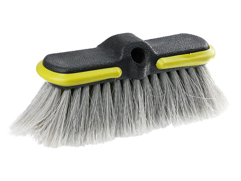 20 cm Breite Waschbürste mit Teleskopstiel von 65 auf 100 cm ausziehbar, mit Ventil und Wasseranschluss für den Gartenschlauch.